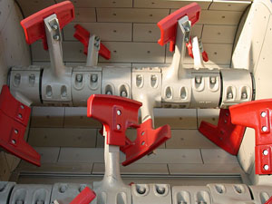 Największe zużycie, np. beton z bardzo twardymi agregatami lub popiół lotny